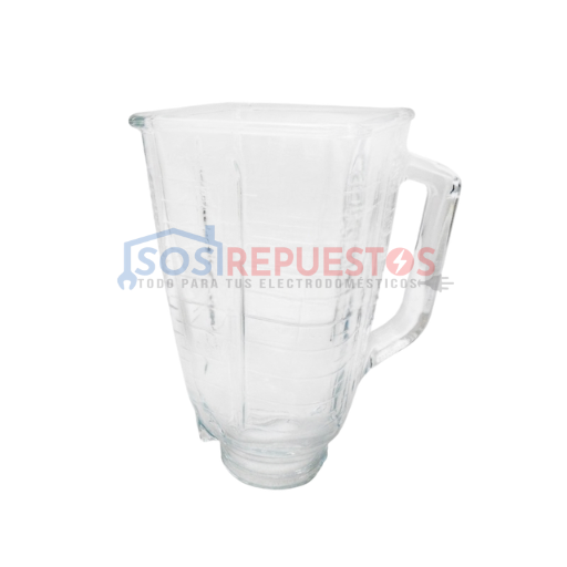 Vaso clásico Oster: fabricado en vidrio templado resistente y duradero, transparente, con manija ergonómica lateral para fácil transporte y uso. Capacidad de 1.25 L, altura 21.2 cm. Base superior cuadrada (10.5 cm x 10.5 cm) y base inferior redonda con rosca (diámetro interno 5.3 cm, externo 6.5 cm). No incluye base ni cuchilla.